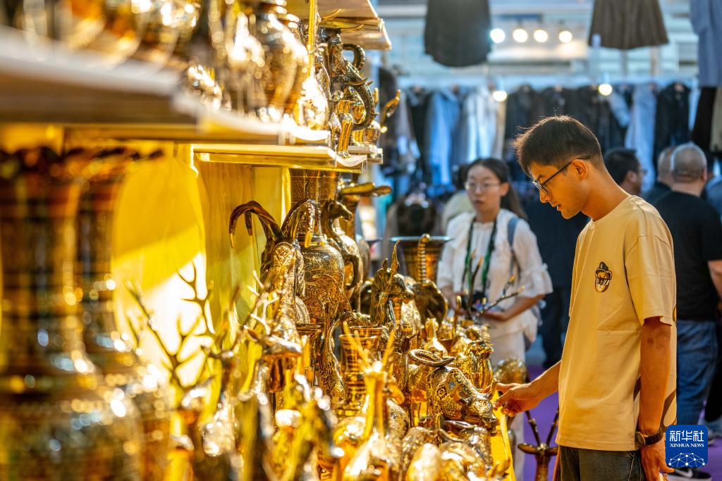 8月18日,參觀者在第七屆中國—南亞博覽會尼泊爾展區參觀、選購商品。新華社記者 胡超 攝