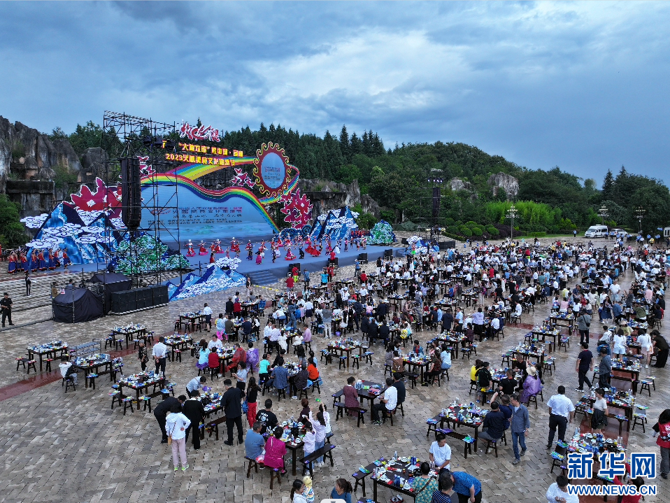 俯瞰宣威火腿美食文化旅游節“美食迎客宴”現場。
