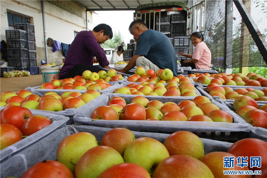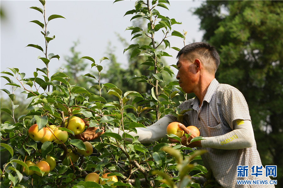 8月16日,云南省曲靖市沾益區大坡鄉大坡村一處果園內,果農采摘美人酥紅梨。