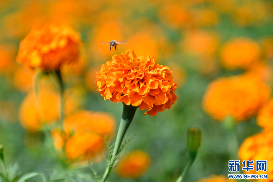 漂亮的萬壽菊(8月17日攝)。新華網發(適志宏攝)