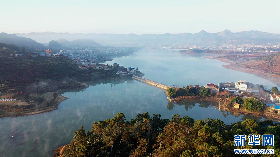 俯瞰蒙自五里沖水庫(攝于8月10日)。新華網發(曹凡喜 攝)