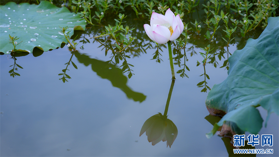 荷塘內白荷如玉、粉荷似霞(8月23日攝)。新華網發(宋光旭 攝)