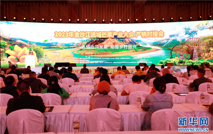 2023年金沙江流域芒果產業大會產銷對接會現場(8月25日攝)。新華網發(華坪縣融媒體中心 供圖)