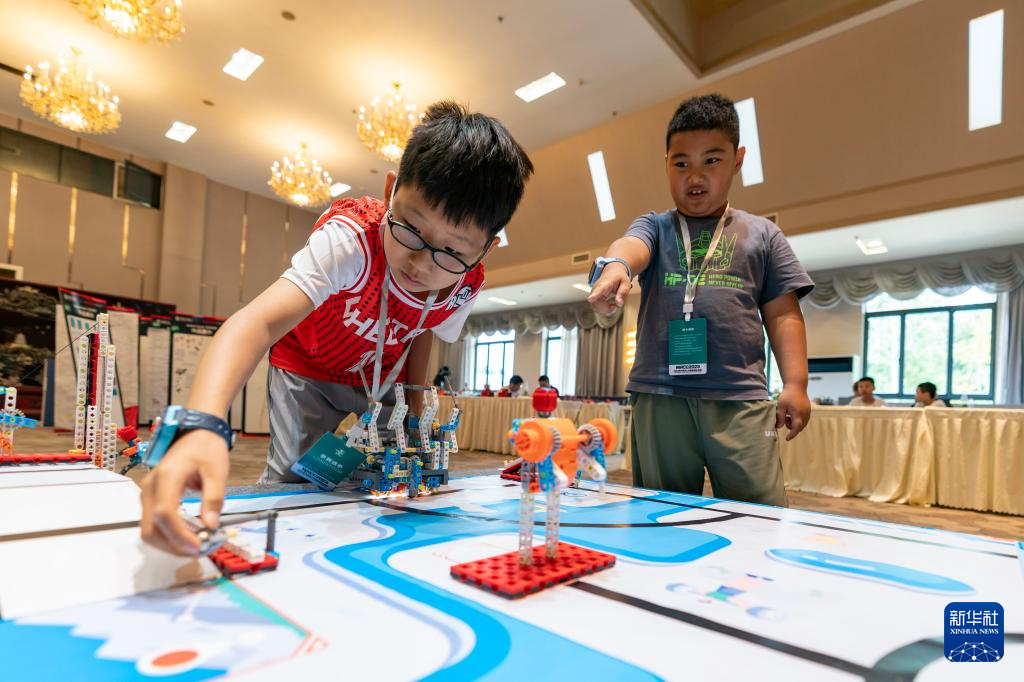 8月26日,兩名參賽選手在比賽前調試機器人。