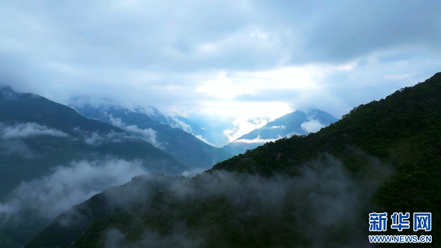 云霧繚繞的群山(8月15日 攝)。新華網發 (張翔 攝)