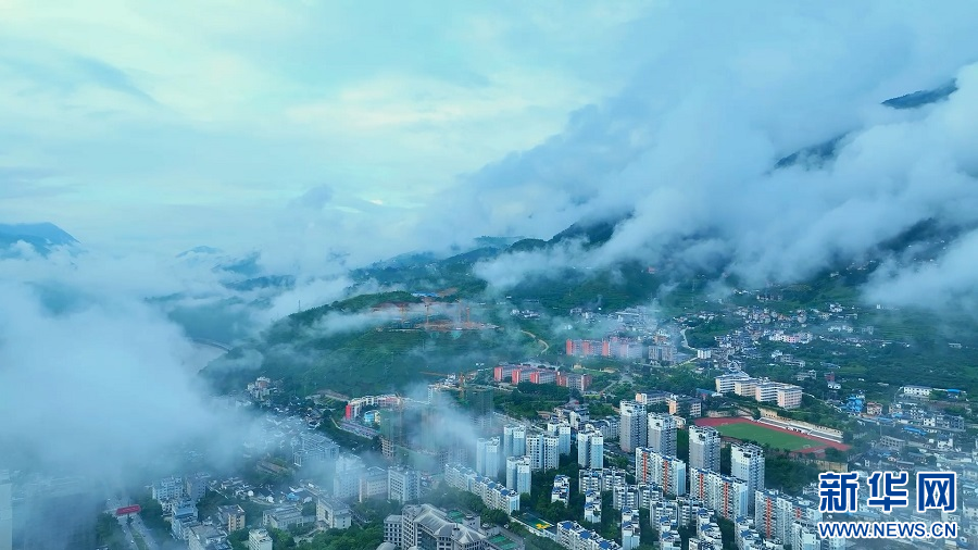 云霧下的瀘水市(8月15日 攝)。新華網發 (張翔 攝)