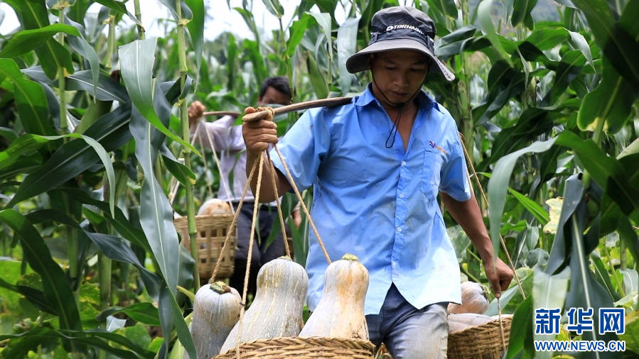 農戶收南瓜(8月24日攝)。新華網發(施甸縣融媒體中心供圖)