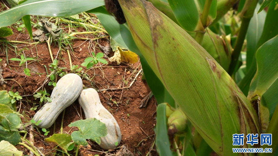 玉米和南瓜間套種植(8月24日攝)。新華網發(施甸縣融媒體中心供圖)