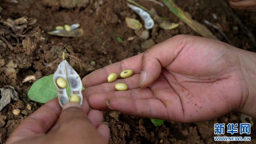 顆粒飽滿的大豆(8月24日攝)。新華網發(施甸縣融媒體中心供圖)