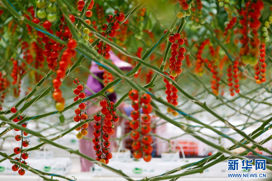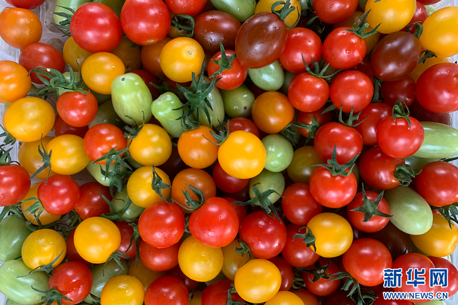 春沐源數字農業基地里產出的各色櫻桃番茄(攝于7月13日)。(新華網 念新洪 攝)