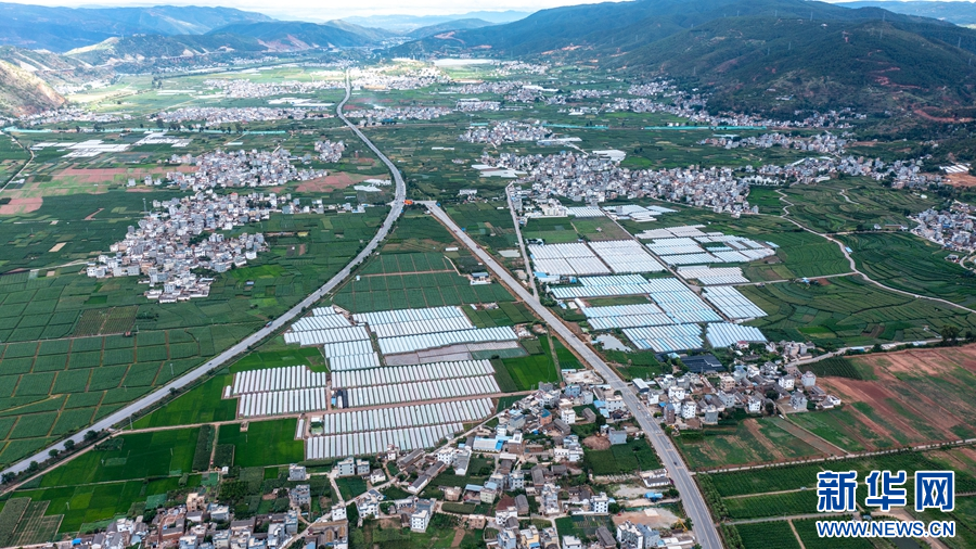 航拍視角下的彌渡縣寅街鎮(攝于7月13日)。(新華網 趙普凡 攝)