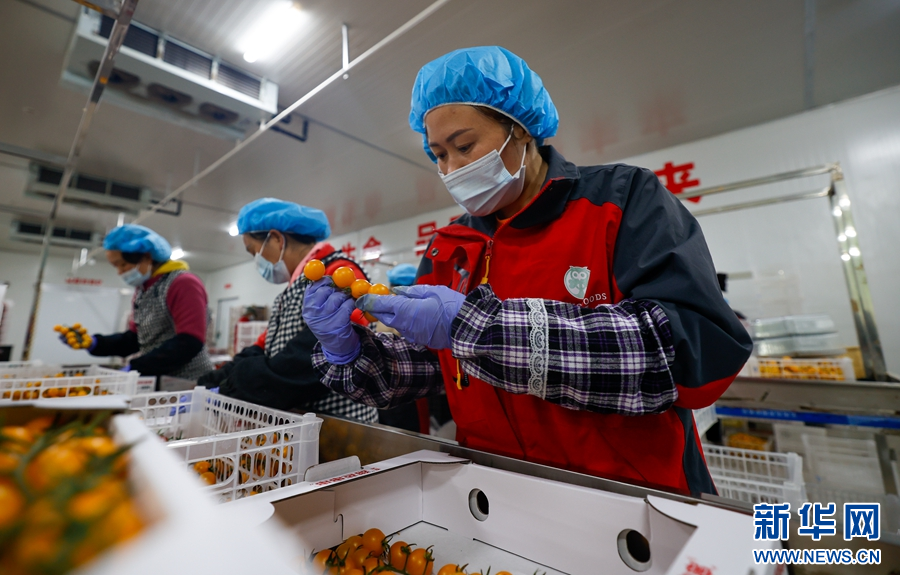 趙曉珍正在分揀櫻桃番茄(攝于7月13日)。(新華網 趙普凡 攝)