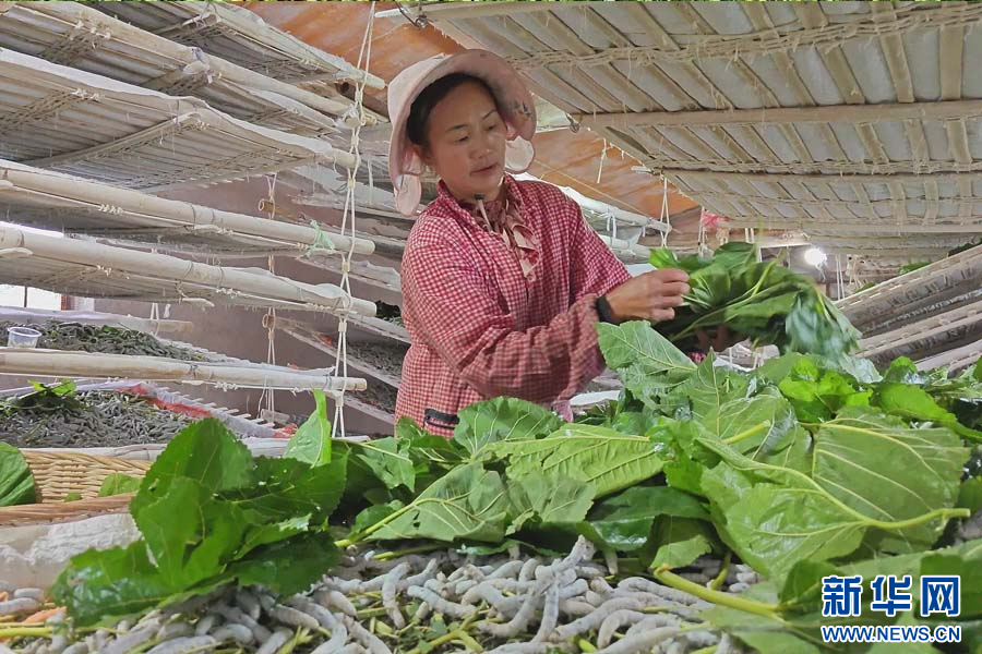 蠶農在喂養蠶(8月30日攝)。新華網發(蘇波 攝)