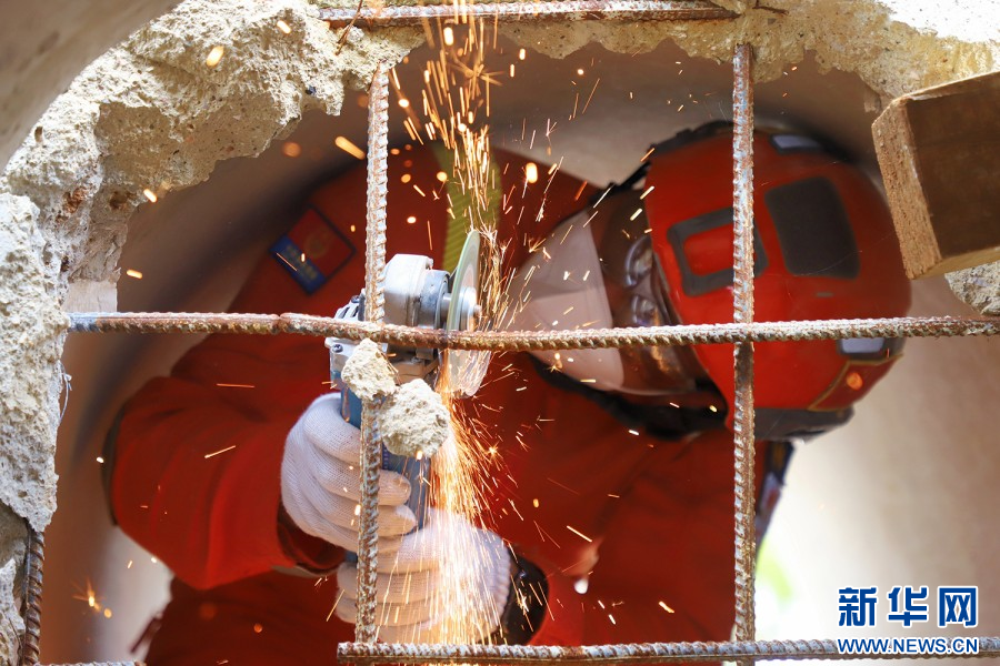 森林消防員正在打通生命通道(9月2日攝)。新華網發(李長順 攝)