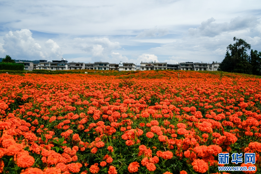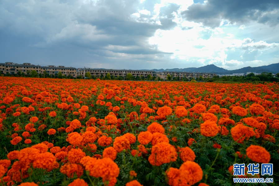 盛開的萬壽菊(9月6日攝)。新華網發(劉子安 攝)