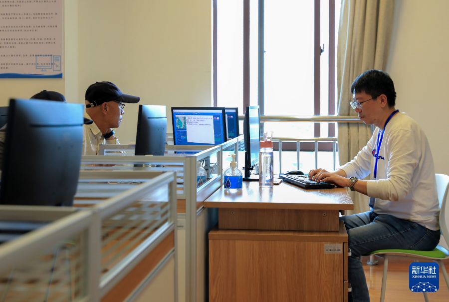 在云南老年大學的圖片視頻處理課上,老師(右)在授課(9月7日攝)。新華社記者 張旻曦 攝