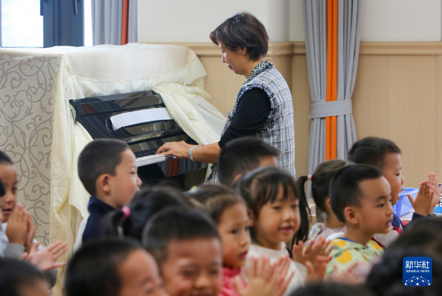 在云南省昆明市西山區前衛幼兒園,老師為小朋友們進行鋼琴伴奏(9月6日攝)。新華社記者 崔文 攝