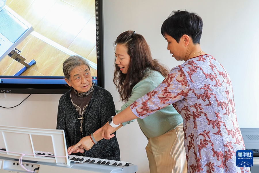 在云南老年大學的鋼琴課上,老師在授課(9月7日攝)。新華社記者 崔文 攝