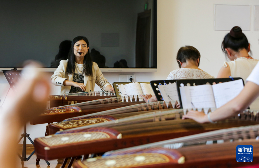 在云南老年大學的古箏課上,老師在帶領學生一起彈奏(9月7日攝)。新華社記者 崔文 攝