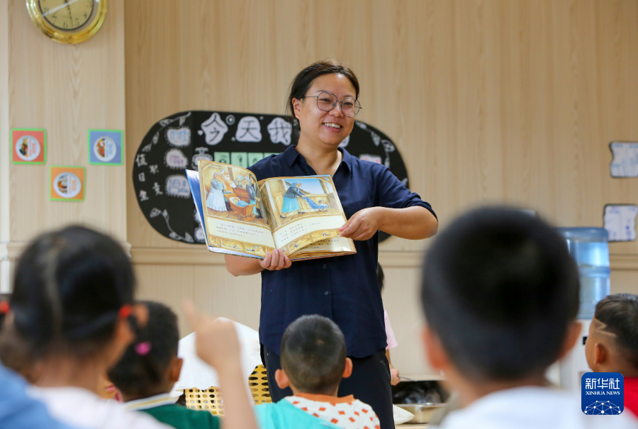 在云南省昆明市西山區前衛幼兒園,老師在為小朋友們講故事(9月6日攝)。新華社記者 崔文 攝