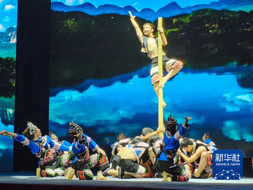 新華網昆明9月11日電 “月亮月亮亮堂堂,阿妹織布聲聲響。木葉歌聲樓上傳,相依相偎在河旁……”