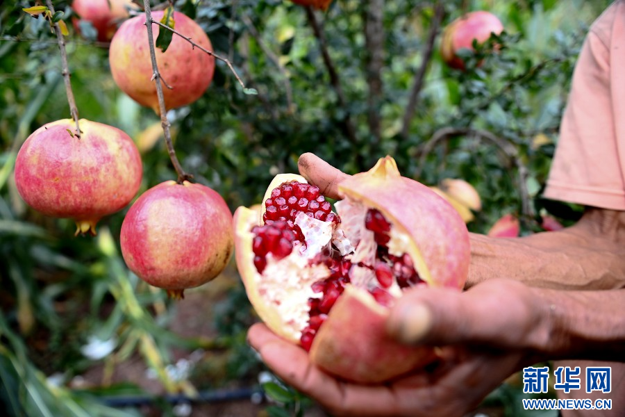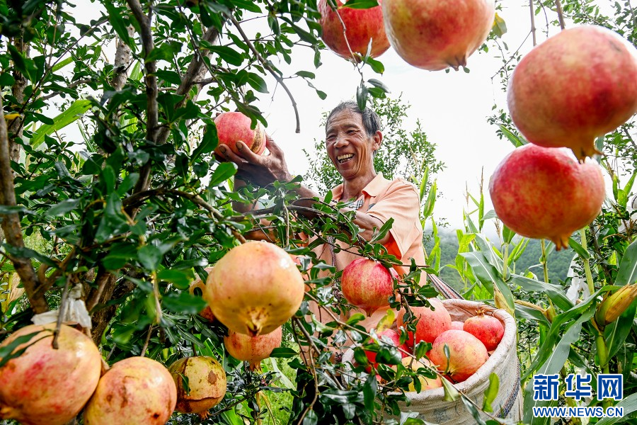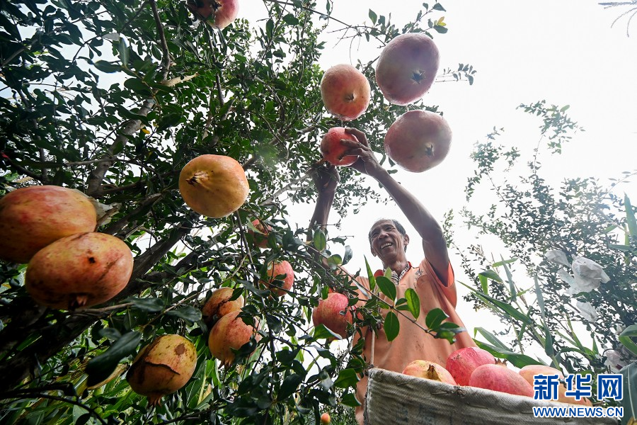 石榴喜獲豐收,農民采摘忙(9月19日攝)。新華網發(適志宏 攝)