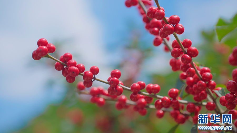 九月,在位于云南省楚雄彝族自治州武定縣貓街鎮三家村的武定縣尚農紅果種植基地里,北美冬青隨風搖曳,晶瑩剔透。
