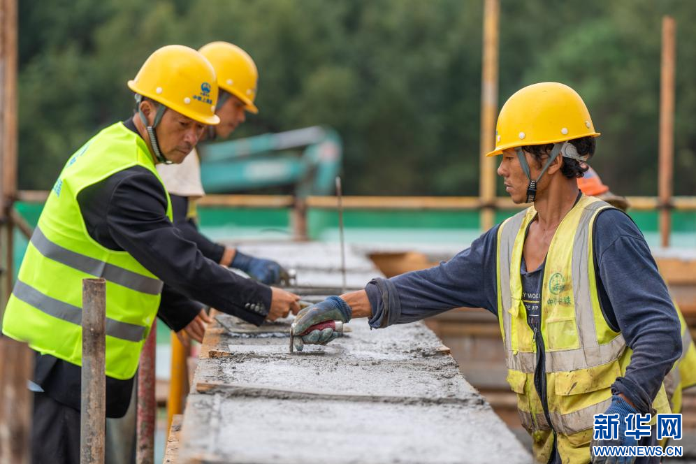 9月30日,在云南省安寧工業園區第四污水處理廠項目工地,中鐵上海局六公司的建設者在對V型濾池池頂堰墻進行混凝土收面。