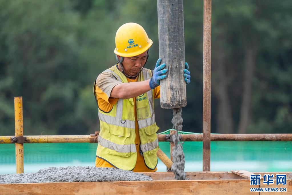 9月30日,在云南省安寧工業園區第四污水處理廠項目工地,中鐵上海局六公司的建設者在對V型濾池池頂堰墻進行混凝土澆筑。