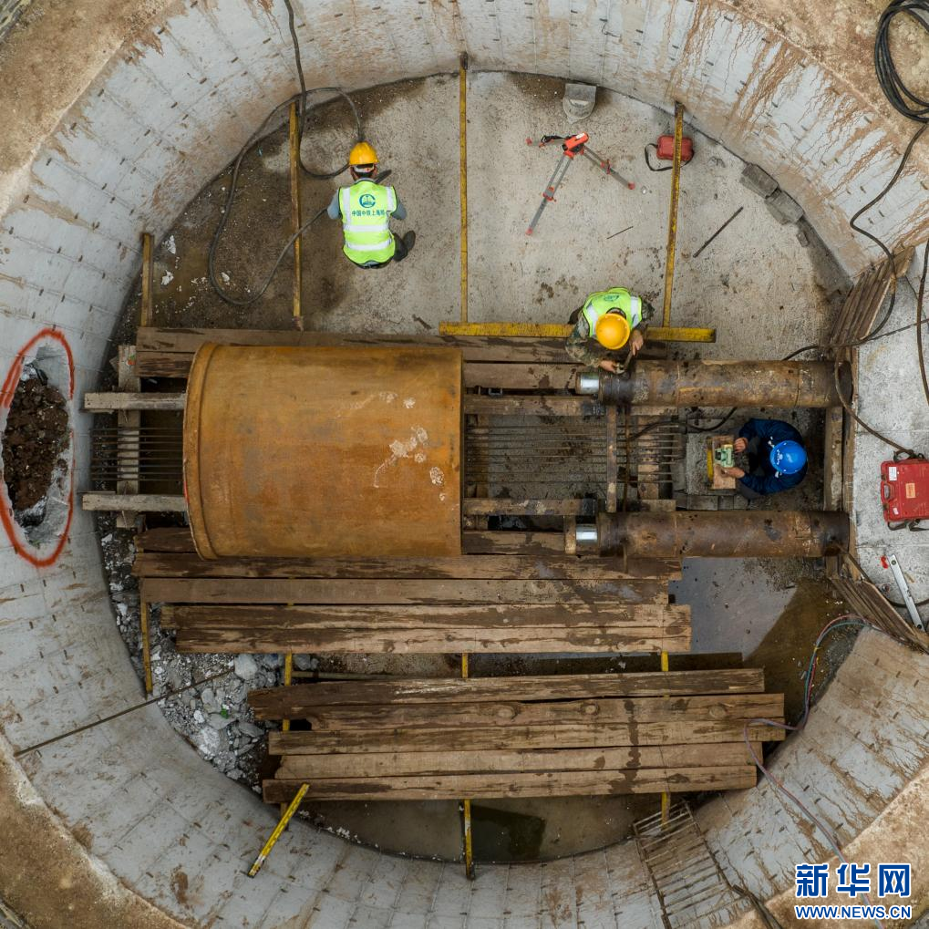 9月30日,在云南省安寧市陸港片區、螳螂川沿線污水收集工程項目工地,中鐵上海局六公司的建設者在進行頂管施工前的技術準備工作(無人機照片)。據悉,該項目為安寧市重點環保治污工程,工程完工后,將有效加強陸港片區、螳螂川沿線水體及周邊環境保護,改善城市環境。