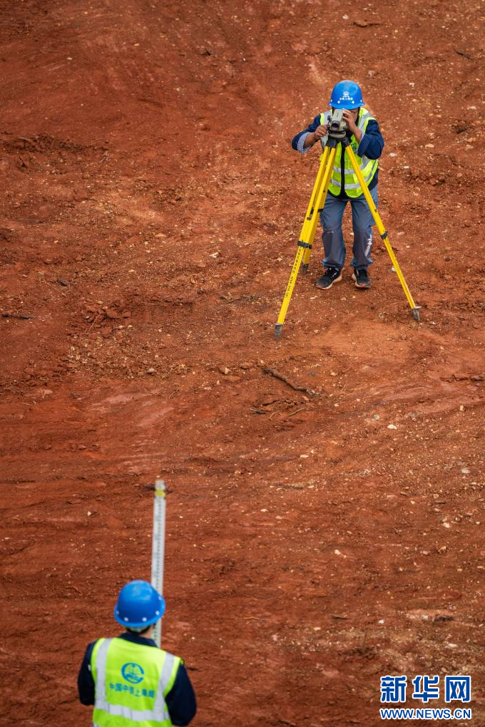 9月30日,在云南省安寧工業園區第四污水處理廠項目工地,中鐵上海局六公司的建設者在對脫水機房基坑進行標高復測。