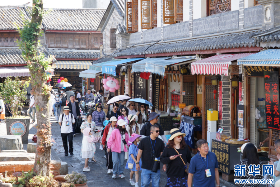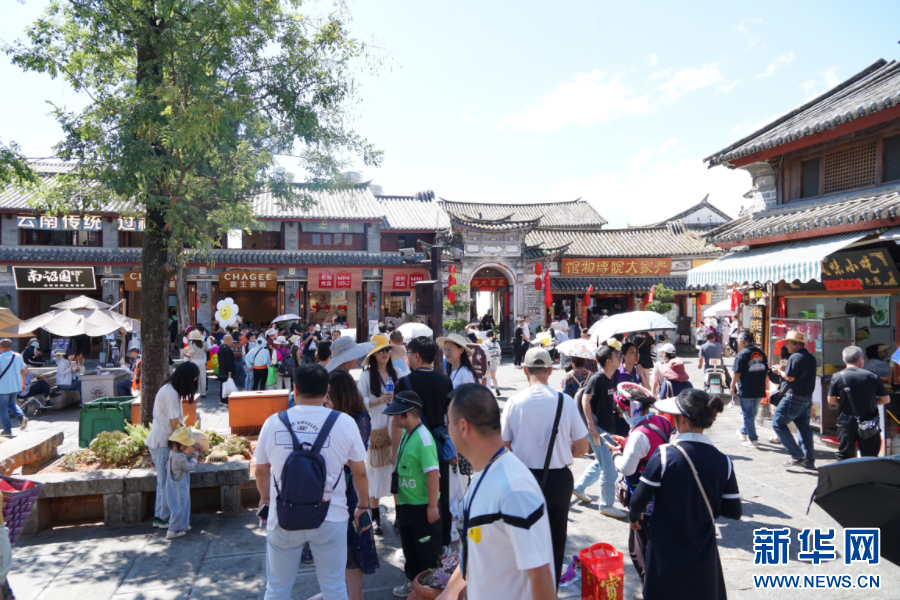 喜洲古鎮內游客眾多,熱鬧非凡(10月4日攝)。新華網發(大理市融媒體中心供圖)