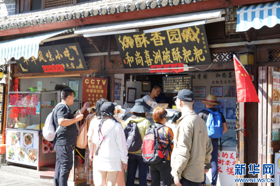 游客排隊購買喜洲粑粑(10月4日攝)。新華網發(大理市融媒體中心供圖)