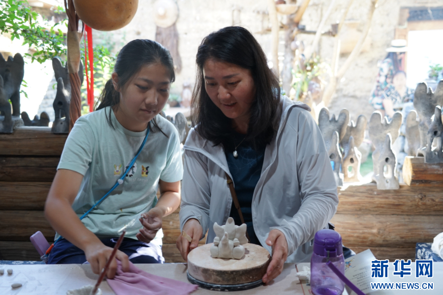 游客體驗瓦貓制作(10月4日攝)。新華網發(大理市融媒體中心供圖)