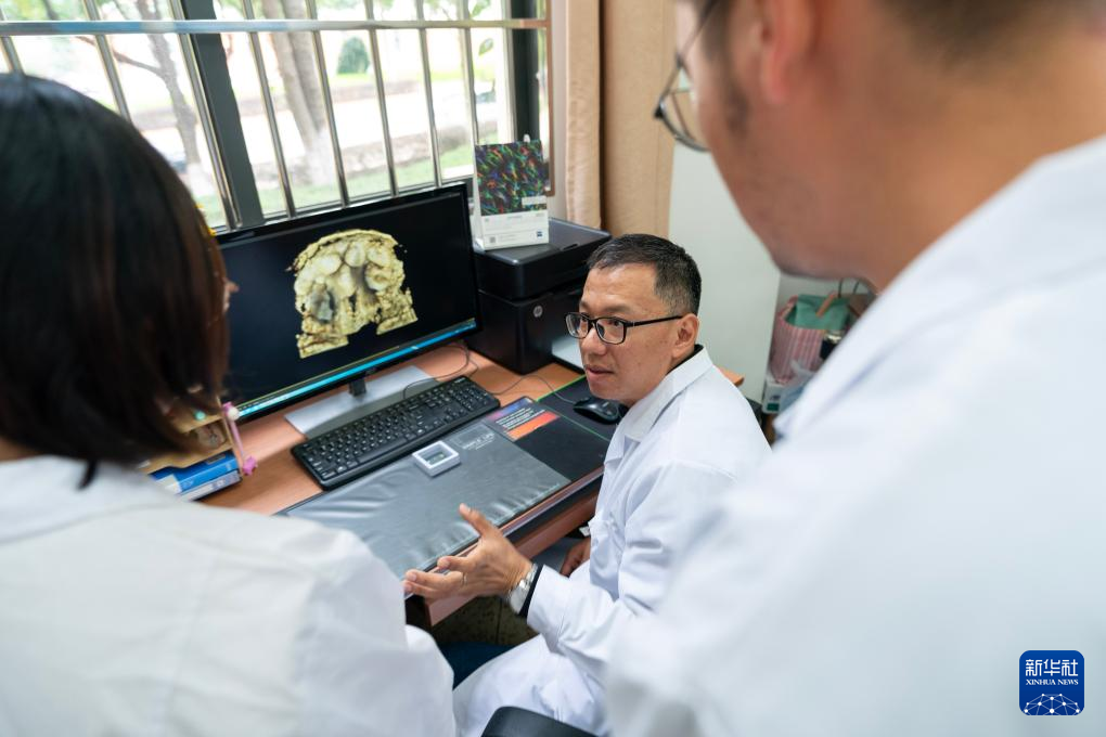 10月11日,劉煜在實驗室給學生講解一種古生物的CT掃描圖。新華社記者 陳欣波 攝