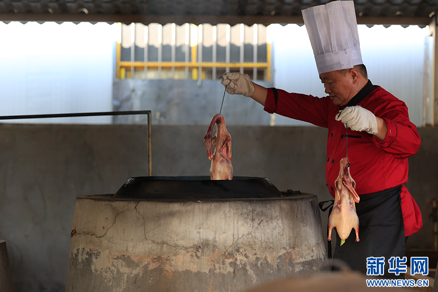 趙學舟從燜爐里取出烤鴨(攝于5月17日)。新華網 趙普凡 攝