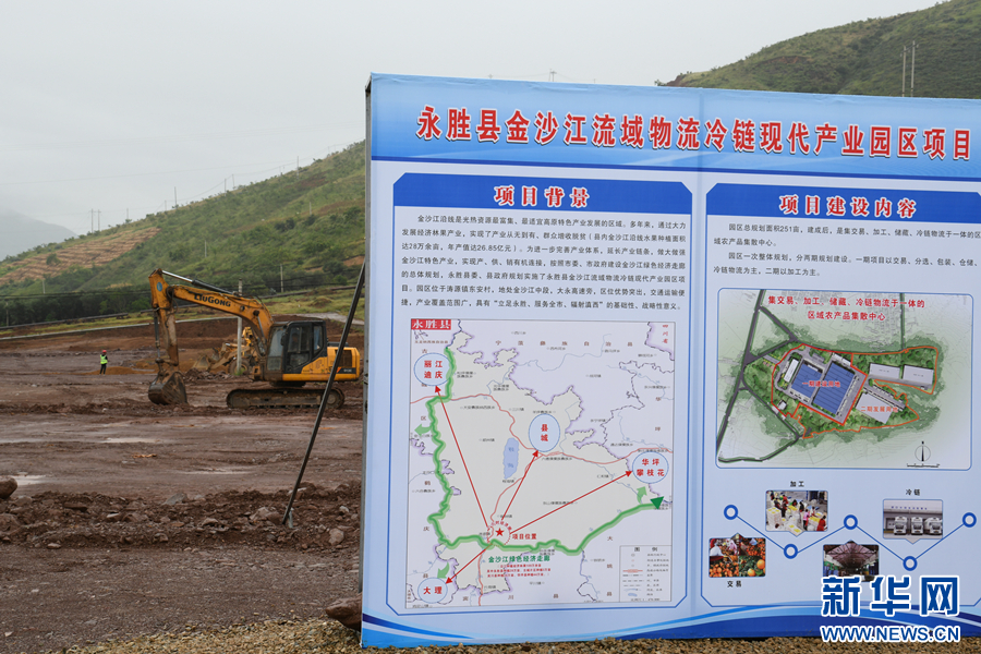 今年6月,永勝縣金沙江流域物流冷鏈現代產業園區舉行開工儀式。目前,該項目已完成整個園區地界勘測、土地征收、三通一平和施工臨時設施建設等工作,現正在進行大面積挖方、回填等施工作業。