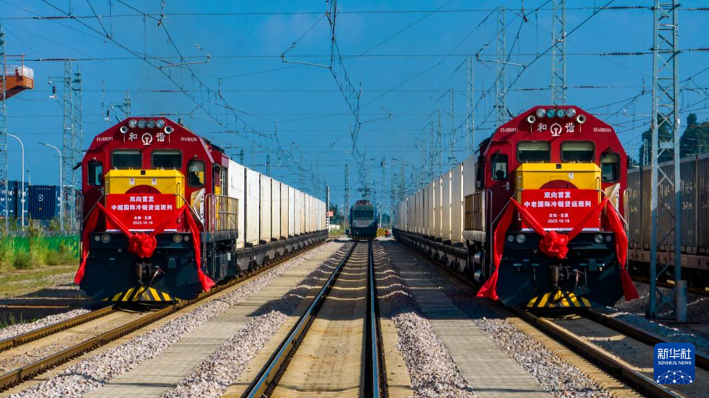 當日上午,兩列滿載著云南特色果蔬的冷鏈班列,同時從云南省玉溪市研和站駛出,1天后將分別抵達老撾萬象和越南老街,這標志著中老、中越鐵路國際冷鏈貨運班列正式開通運營。