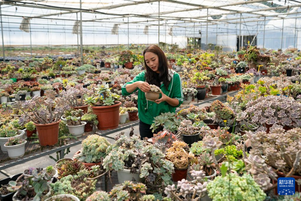 這是10月18日拍攝的李思敏位于晉寧區寶峰街道的多肉植物直播基地。新華社記者 陳欣波 攝
