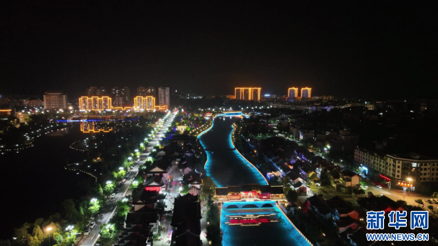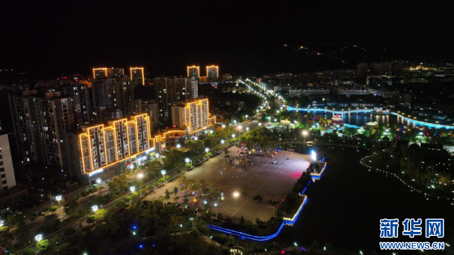 夜幕降臨,在云南省楚雄彝族自治州大姚縣,光影交錯,夜景如畫。(張浩 李敏琦)