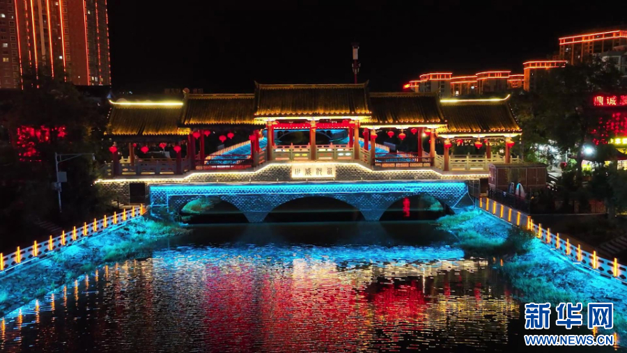 大姚西河夜景(10月10日攝)。新華網發(大姚縣融媒體中心供圖)