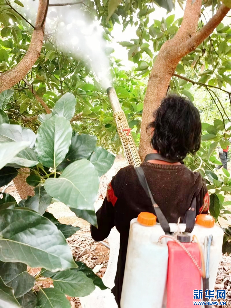 管理牛油果樹的農戶(10月18日攝)。新華網發(楊麗春 攝)