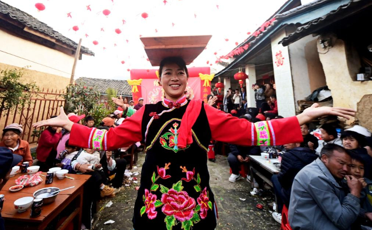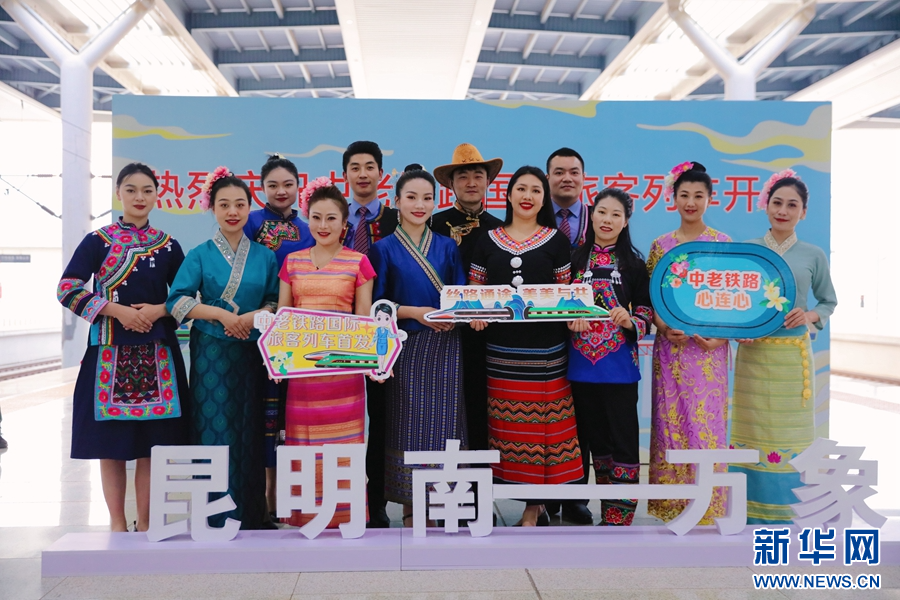4月13日,在昆明南站舉行的中老鐵路國際旅客列車首發儀式上,鐵路職工盛裝迎接旅客。新華網發(楊紫軒 攝)