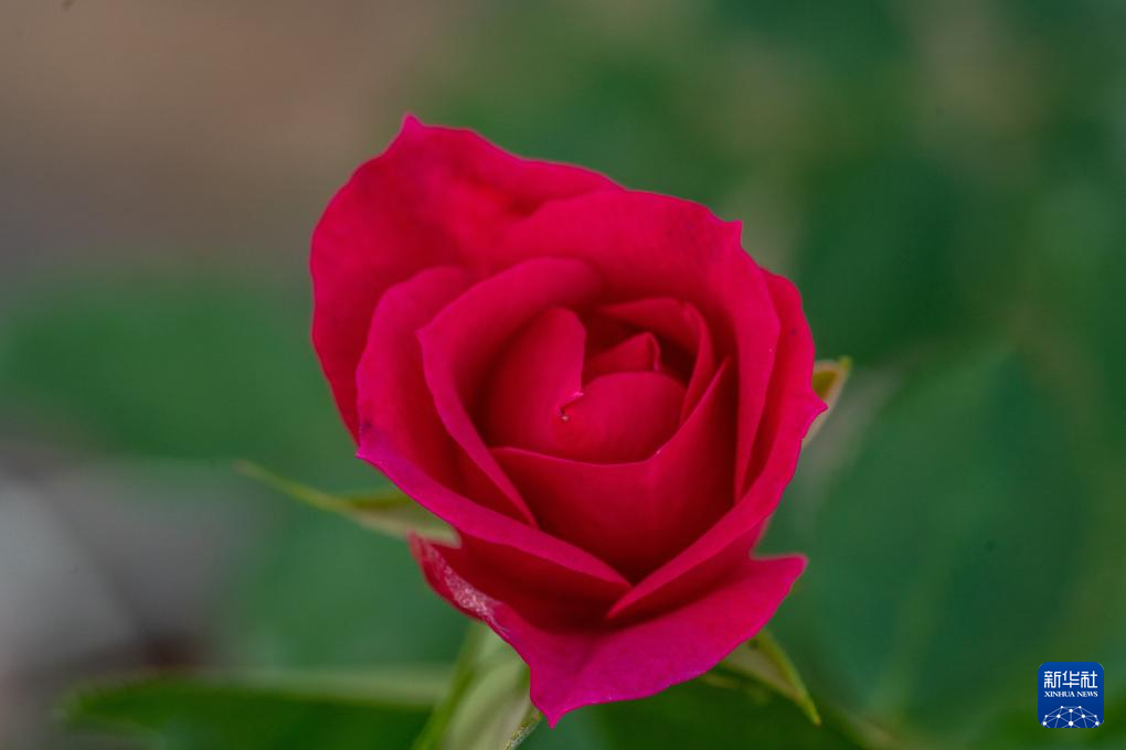云南省安寧市現代農業園區玫瑰種植示范園里的深桃紅、國風系玫瑰花“SM-JK10-3”(10月20日攝)。新華社記者 胡超 攝