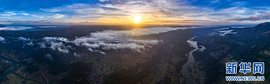 航拍云霧下的龍江秋景(10月24日攝)。新華網發(楊磊 攝)