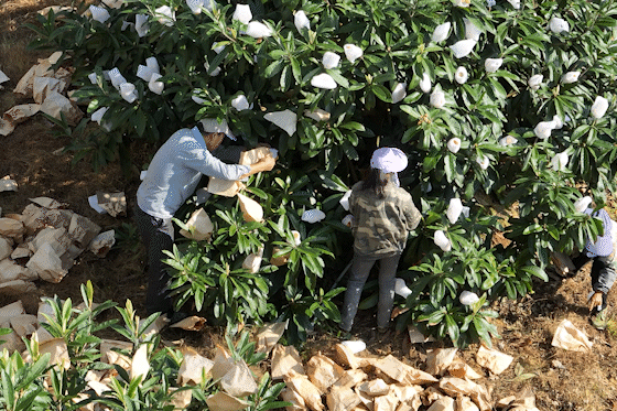 11月初,云南省屏邊苗族自治縣從福建引種的特早熟“三月白”枇杷搶先上市,迎來豐收。在屏邊縣玉屏鎮大份子村枇杷種植基地里,成行成排的枇杷樹郁郁蔥蔥,工作人員正小心地對“三月白”枇杷進行測產。2023年“三月白”枇杷單棵果樹產量30余公斤,測算畝產800余公斤。