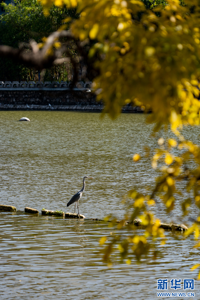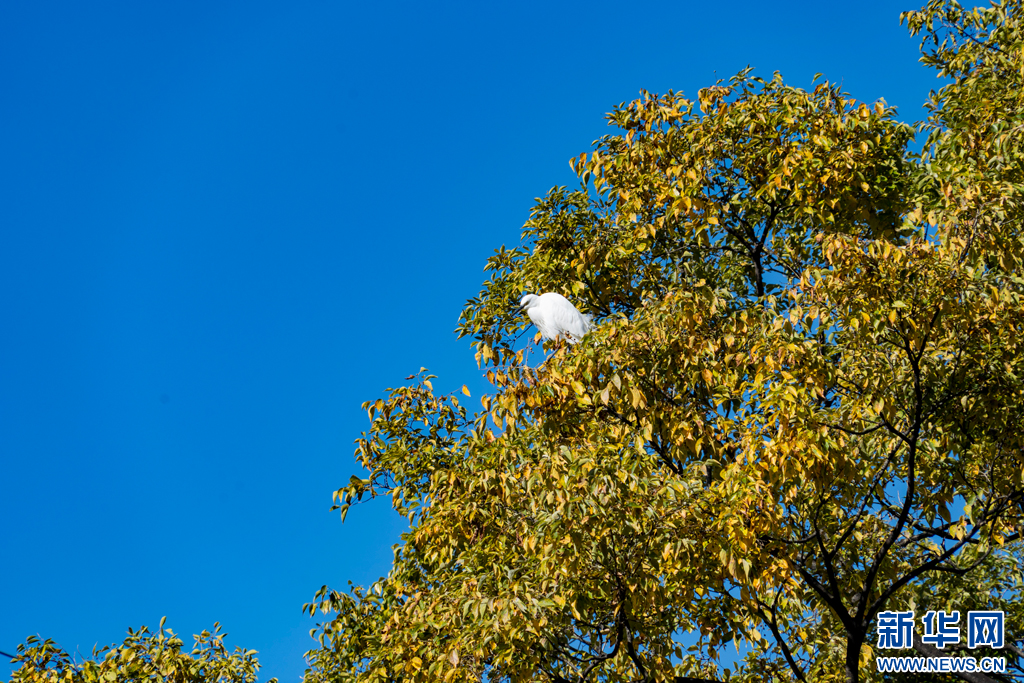 昆明大觀河岸的滇樸和鳥類(11月4日攝)。新華網發(鄭益 攝)