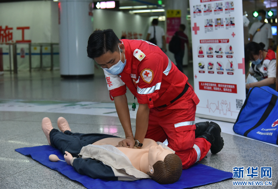 劉易瑋到地鐵站科普應急救護技能和知識(資料圖)。新華網發(昆明市紅十字會供圖)