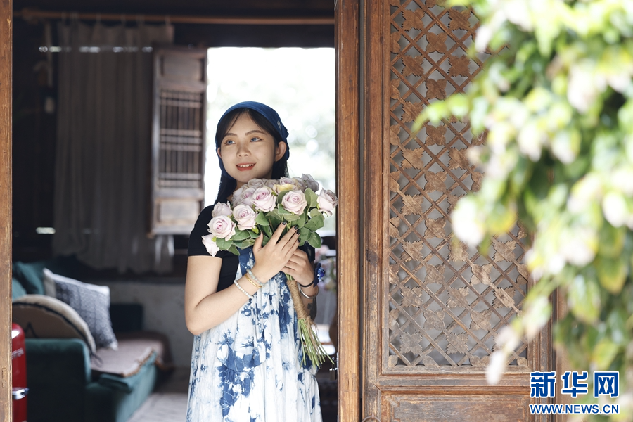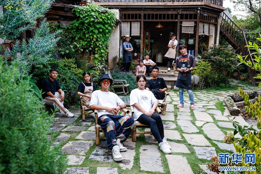 電視劇拍攝完成后,有風小院原樣保留了下來,圖為店員們在小院中留影(攝于9月19日)。新華網 趙普凡 攝