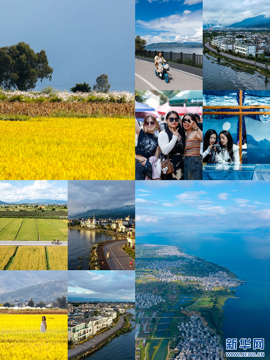 拼版圖片:大理各旅游景點,“追風”而來的游客們。新華網 趙普凡 攝